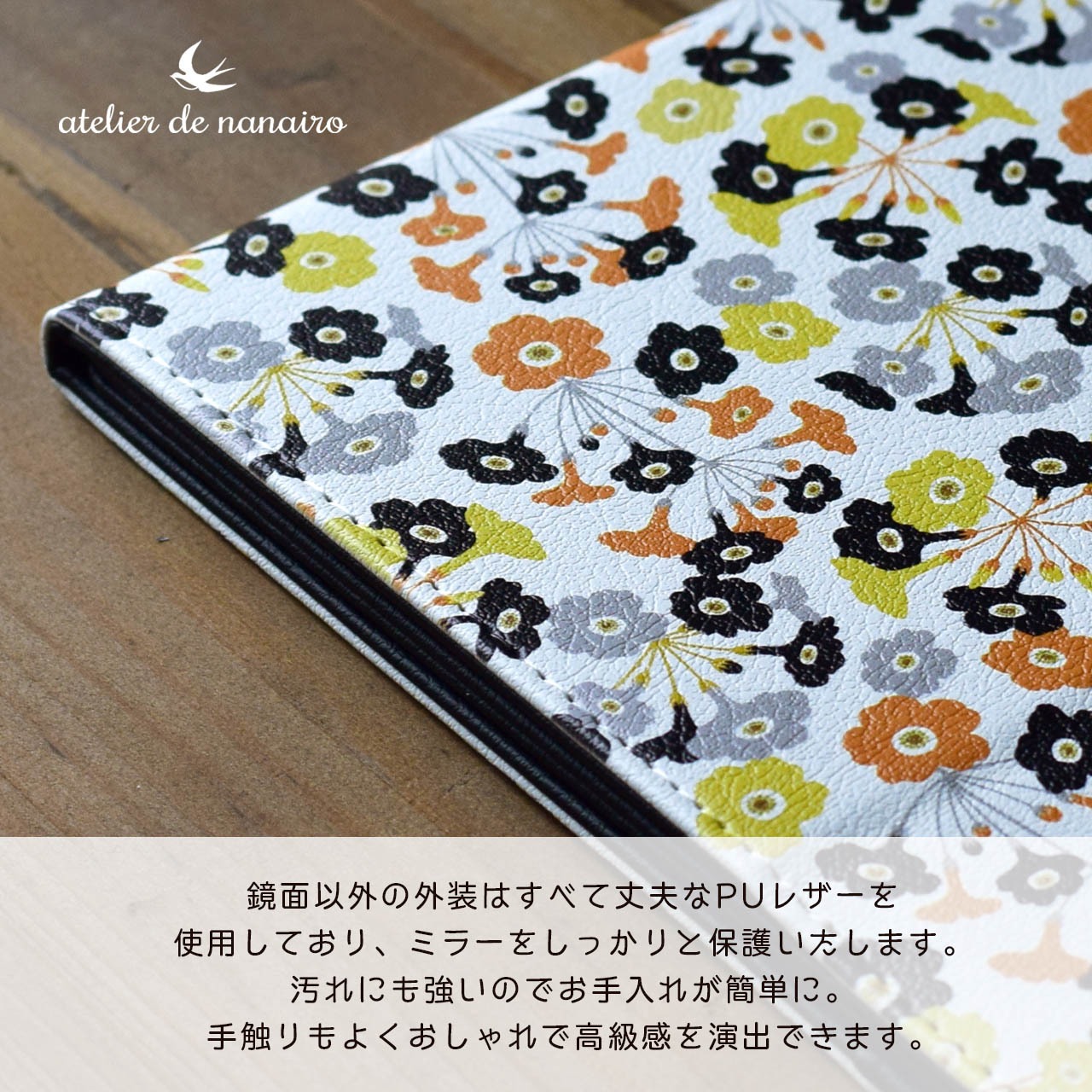 手触りも心地いいおしゃれな高級感のあるミラーです。